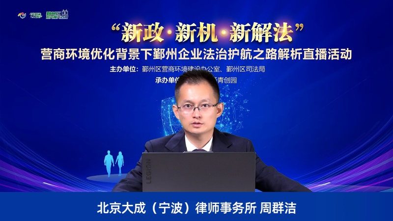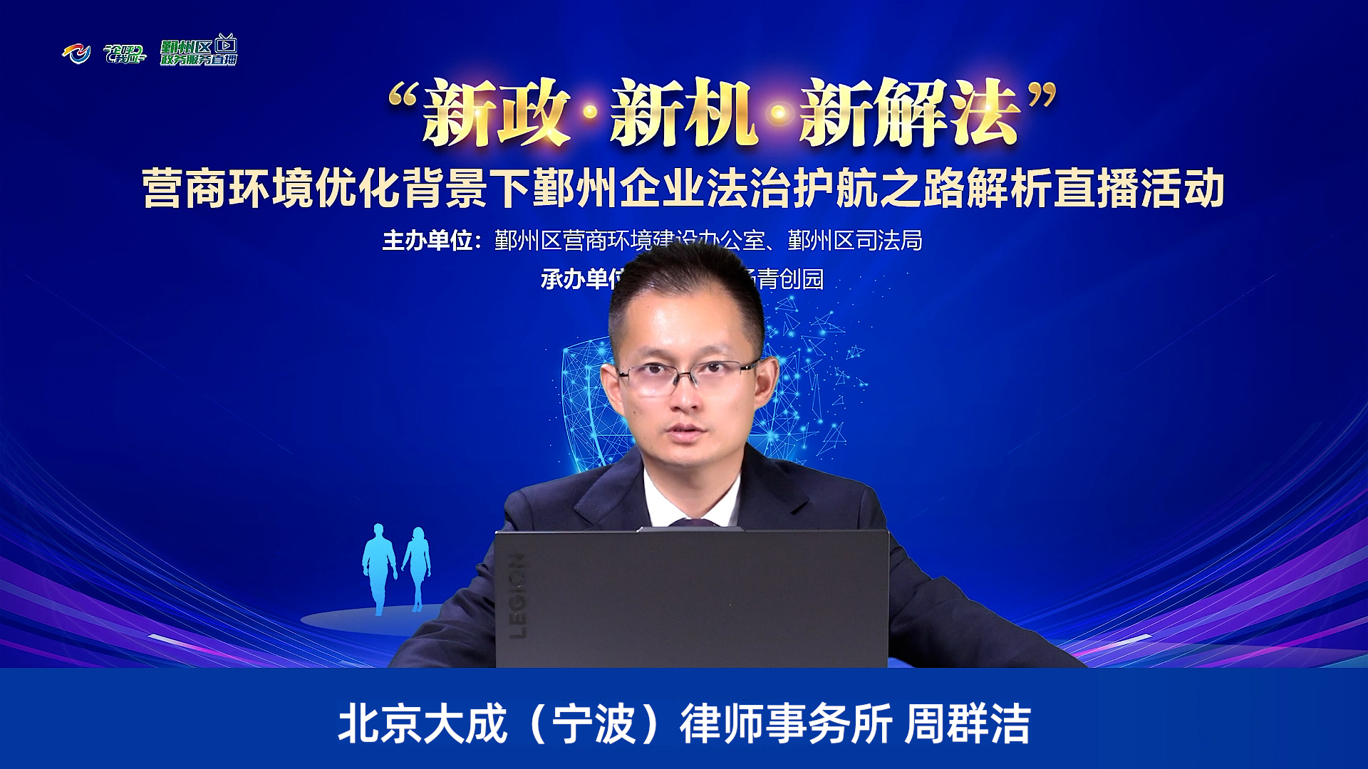 为纵深推进营商环境“市场化、法治化”建设,切实为鄞州企业发展筑牢法治屏障,9月23日,鄞州区营商环境建设办公室与鄞州区司法局联合主办了“新政・新机・新解法”营商环境优化背景下鄞州企业法治护航之路解析直播活动开播,吸引众多企业在线参与。